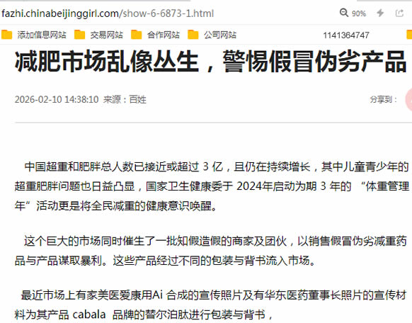 最近市场上有家美医爱康用Ai 合成的宣传照片及有华东医药董事长照片的宣传材料为其产品 cabala 品牌的替尔泊肽进行包装与背书,